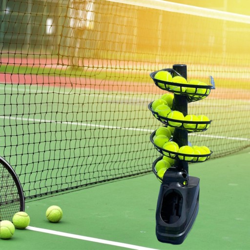 CECHA: Ten podajnik do miotaczy tenisowych o niewielkich rozmiarach, lekki i przenośny, łatwy w użyciu i przenoszeniu.