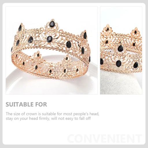 Ta retro King Crown wykonana jest z najwyższej jakości materiału stopowego, bezpiecznego i trwałego w użyciu, przyjaznego dla skóry, niełatwego do złamania lub odkształcenia, służącego życiu. Doskonałe rzemiosło, starannie dopracowane w każdym szczególe, aby nadać mu elegancki, czarujący i piękny wygląd. Szerokie zastosowania, odpowiednie na przyjęcie weselne, cosplay, występ na scenie, karnawał, robienie zdjęć i wiele innych.