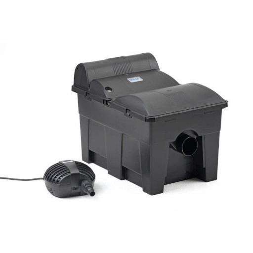Ważną częścią zestawu jest pompa Oase FP-3500, która przy zużyciu energii 70 W transportuje wodę do filtra z wydajnością maks. 3 400 l/h. Maksymalne podnoszenie słupa wody pompy dochodzi do 2,7 metra. Ogromną zaletą FP-3500 jest ceramiczny wirnik, który nie rdzewieje, jest długowieczny i może pracować nawet w słonej wodzie. Pompa posiada także wyłącznik termiczny, zabezpieczający urządzenie przed przegrzaniem.