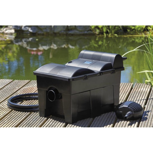 - Doskonale połączony zestaw: filtr przepływowy BioSmart 14000 ze zintegrowaną lampą UVC 11 W, pompa FP-3500 o wydajności maks. 3 400 l/h przy zużyciu 70 W, wąż o długości 3 m