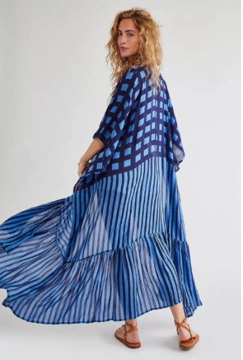 ПЛЯЖНОЕ ПЛАТЬЕ МАКСИ ПАРЕО, КИМОНО, С ПЛАСТИНКОЙ, В ПОЛОСКУ