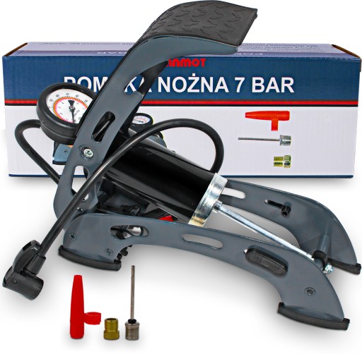 - Dzięki długiemu wężowi i wydajnemu cylindrowi pompki nożnej możesz w mgnieniu oka napompować opony, piłki i materace