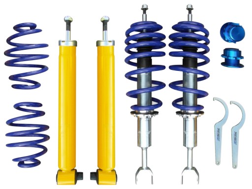 W skład zestawu wchodzą 2 amortyzatory gwintowane, 4 sprężyny sportowe, amortyzatory tylne, tuleje regulacyjne tylne,