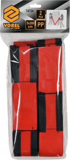 Pasy firmy VOREL przeznaczone są do przenoszenia mebli lub innych ciężkich obiektów np. podczas przeprowadzek. Wykonane z wytrzymałej tkaniny polipropylenowej z wyściółką z flaneli.