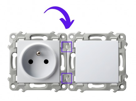 Kolejną nowością zastosowaną w gniazdach pojedycznych z uziemieniem i gniazdach specjalistycznych jest montaż pokrywy zewnętrznej za pomocą precyzyjnych zaczepów "na klik".