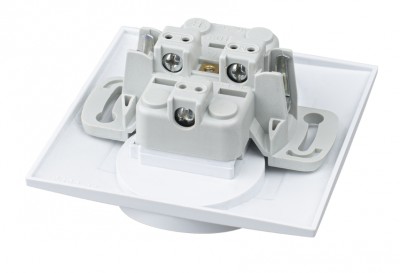 Konstrukcja łączników, gniazd pojedynczych i specjalistycznych umożliwia ich przykręcenie w puszce instalacyjnej bez uprzedniego demontażu pokryw zewnętrznych.