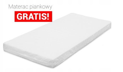 W zestawie stelaż, szuflada oraz materac piankowy.