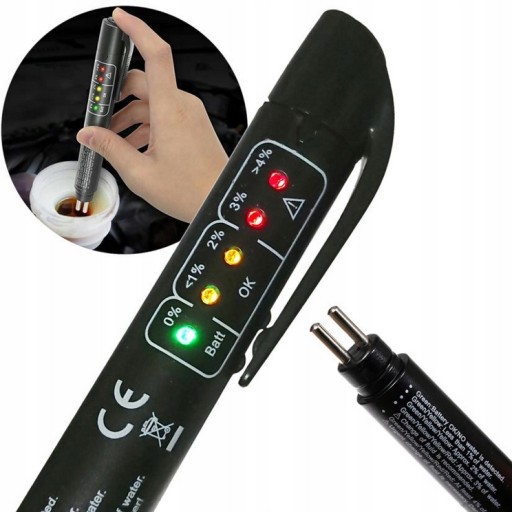 ✅KOMPAKTOWY TESTER PŁYNU HAMULCOWEGO. UMOŻLIWIA BŁYSKAWICZNY POMIAR ZAWARTOŚCI WODY W PŁYNIE HAMULCOWYM, NIEZALEŻNIE OD POSIADANEGO MODELU SAMOCHODU. WYSTARCZY ZANURZYĆ ELEKTRODY TESTERA W ZBIORNICZKU Z PŁYNEM HAMULCOWYM I ODCZYTAĆ WSKAZANIE DIOD KONTROLNYCH. URZĄDZENIE JEST W STANIE PRZETESTOWAĆ WIELE RODZAJÓW PŁYNÓW HAMULCOWYCH (DOT 3, DOT 4, DOT 5, DOT 5.1).