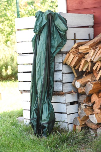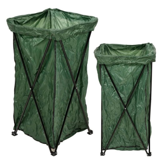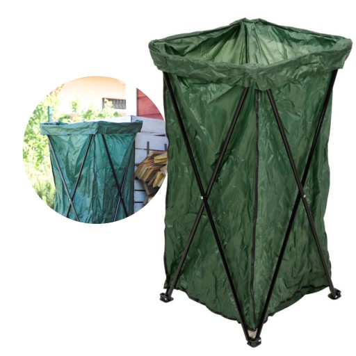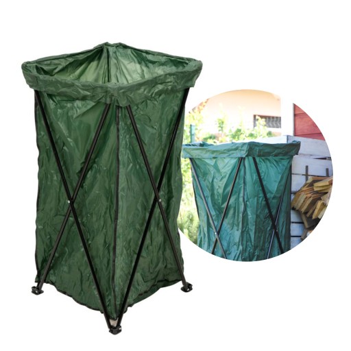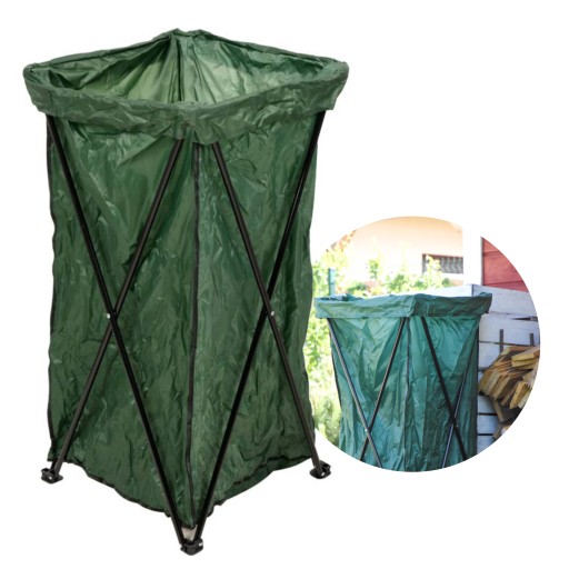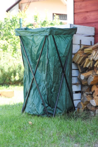 Składany kosz ogrodowy, pomocny przy pracach porządkowych. Posiada wytrzymały worek mocowany do stelaża na rzepy.