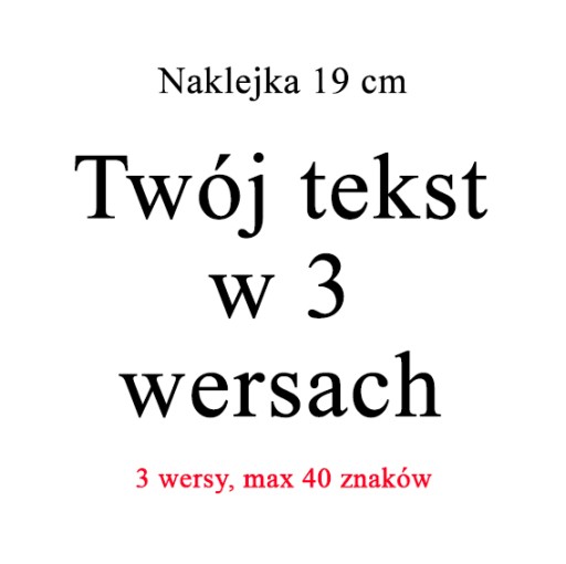 Kupując w tym ogłoszeniu masz do dyspozycji napis w 3 wersach, max 40 znaków.