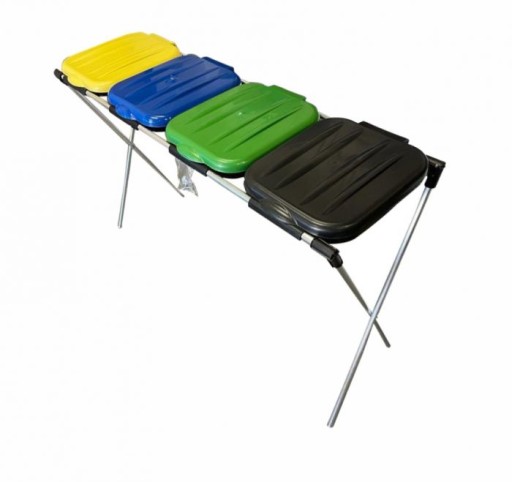 Lekka, a zarazem wytrzymała, metalowa konstrukcja stelaża pozwala na segregację czterech rodzajów odpadów przy użyciu worków o pojemności do 120 litrów. Warstwa antykorozyjna skutecznie zapobiega rdzewieniu w wilgotnym środowisku. Szczelne, plastikowe pokrywy w kolorach recyklingowych sprawiają, że stojak wygląda estetycznie i nie wymaga zastosowania dodatkowych oznaczeń.