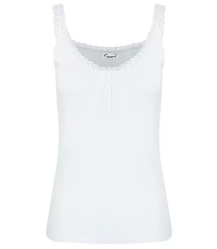 Klasyczny top Damska koszulka na ramiączkach Uniwersalny fason Wykonana ze świetnej tkaniny - idealnie dopasowuje się do sylwetki Ozdobiona koronką Idealny wybór na cieplejsze dni!