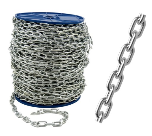 Pełna rolka zawiera 56m łańcucha. Czasem zakupiony odcinek składa się z dwóch części połączonych ogniwem skręcanym. Jeśli chcą Państwo łańcuch mieć w całości bez łączenia ogniwem to prosimy o informację w wiadomości dla sprzedającego na końcu zakupu.