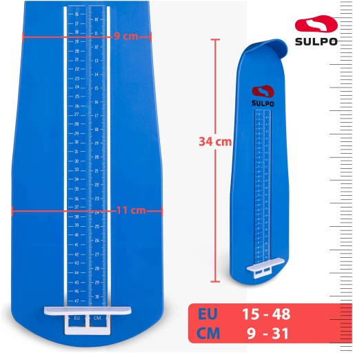Szeroki zakres pomiaru sprawia, że miarka może być używana do mierzenia zarówno dorosłej stopy, jak i dziecięcej.