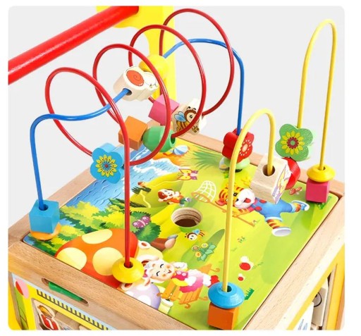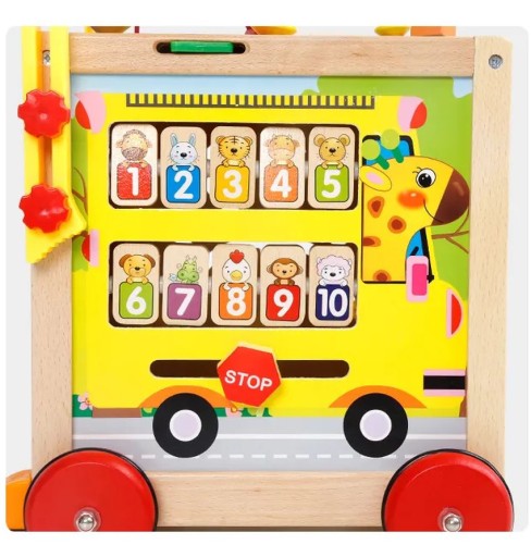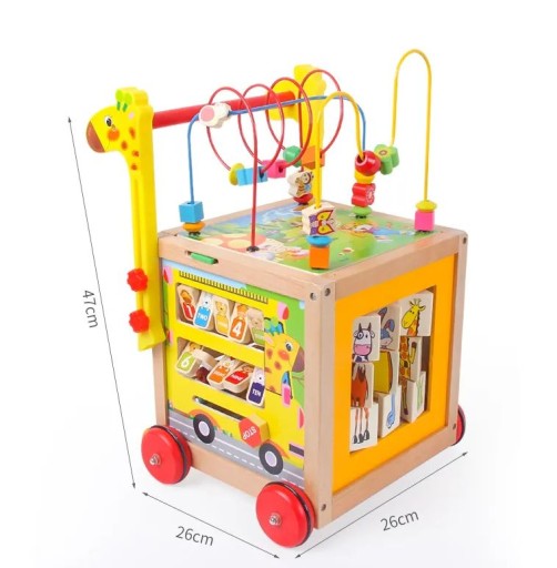 WSPANIAŁY WIELOFUNKCYJNY DREWNIANY CHODZIK PCHACZ - KOSTKA EDUKACYJNA Z LABIRYNTEM 7w1