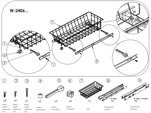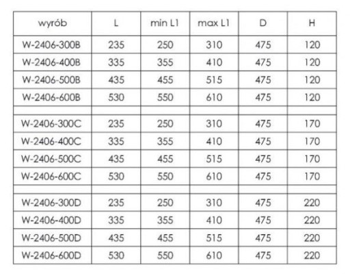 - Szerokość rozstawienia prowadnic (L1 min. - L1 max.): od 355 mm do 410 mm