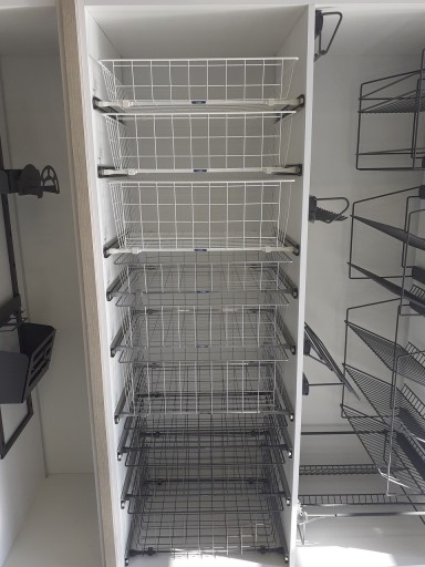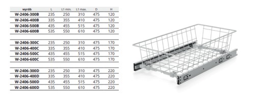 Szuflada druciana firmy NOMET to świetne rozwiązanie do garderoby. Dzięki swojej konstrukcji zapewnia odpowiedni przepływ powietrza, co zapewni świeżość ubraniom jak i umożliwi łatwe segregowanie przechowywanych w niej rzeczy. Kosz mocowany jest do prowadnicy i posiada regulację, dzięki temu z łatwością można dostosować go do wymiarów wnętrza szafy. Prowadnice kulowe zastosowane w tym systemie zapewniają wygodne i płynne użytkowanie przez wiele lat. Wysokość samego kosza wynosi 200 mm, a wraz z prowadnicami 220 mm. Model ten przeznaczony jest do korpusu o szerokości zewnętrznej 400 mm.