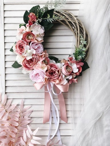 ВЕСЕННИЙ ЦВЕТОЧНЫЙ ВЕНОК НА ДВЕРЬ, РОЗЫ, ПЛАТЬЕ