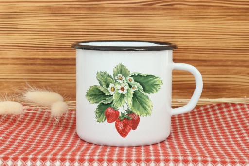 KUBEK GARNUSZEK EMALIOWANY truskawka VINTAGE boho