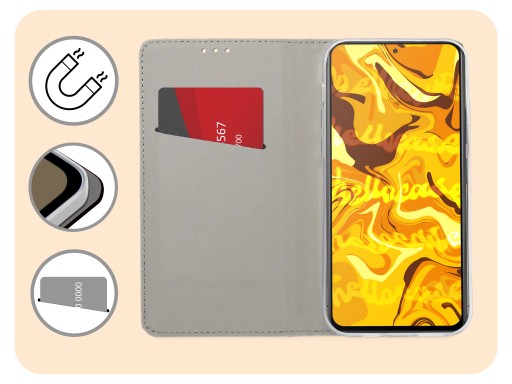 ◉ Magnetycznemu zamknięciu, które trzyma etui w ryzach. Podczas spadania etui się nie otworzy i nie narazi Twojego smartfona na uszkodzenie!