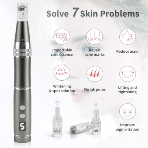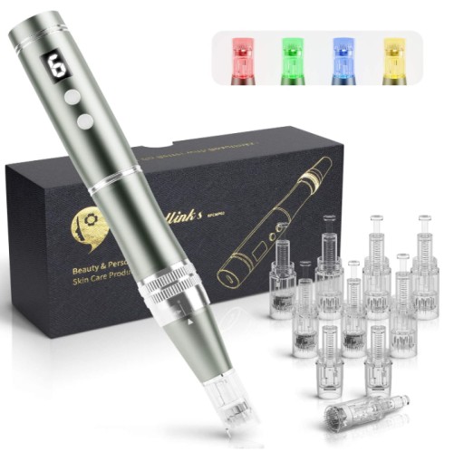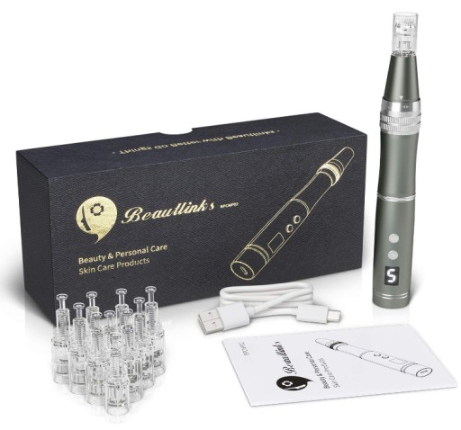 Ulepszony nowy długopis do mikronakłu: Elektryczny długopis z mikroigłami firmy Beautlink wyposażony jest w 6 stopni prędkości, 4 diody LED z różnymi funkcjami i 3 wkładami z igłami. Pomaga nie tylko zwiększyć wchłanianie esencji pielęgnacyjnych skóry, ujędrnia i podnosi skórę i wygładza ją ale również zminimalizować wiele częstych problemów skórnych. Możesz w każdej chwili cieszyć się dobrą pielęgnacją skóry w domu.