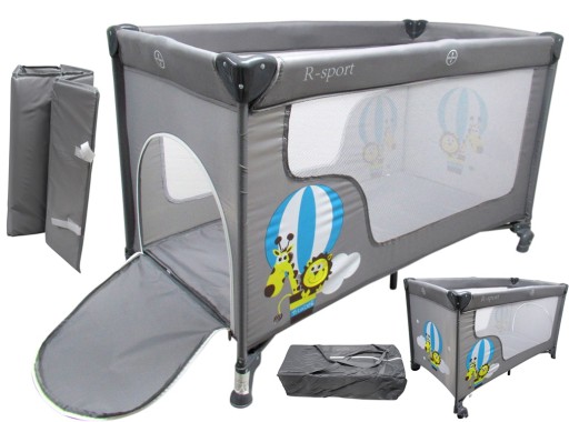 - Złożone łóżeczko mieści się w torbie podróżnej (torba w zestawie),