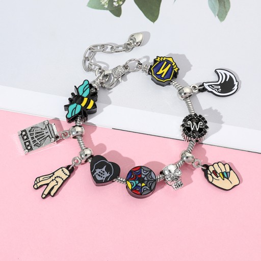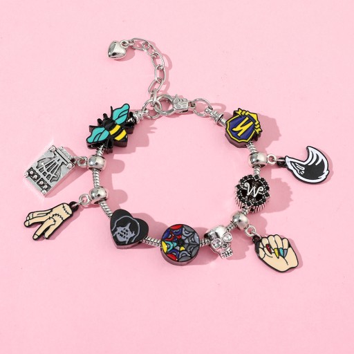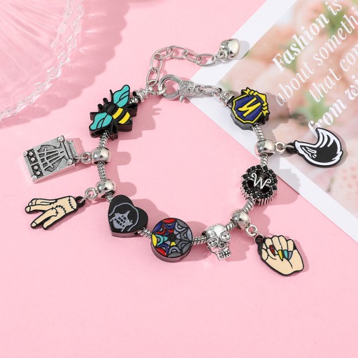 Браслет с металлическими подвесками в виде серии «Уэнсдей Аддамс»