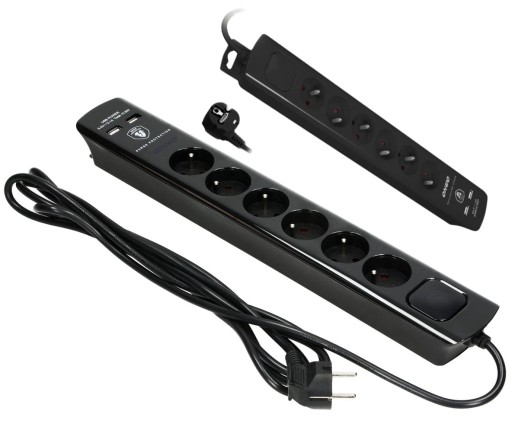 Listwa przeciwprzepięciowa ORNO OR-AE-13163/B/3M pozwala na rozdzielenie zasilania na 6 urządzeń elektrycznych o łącznym poborze mocy do 2300W. Zasilanie można wyłączyć dwutorowym, podświetlanym wyłącznikiem głównym. Posiada także 2 wejścia USB. Urządzenie zabezpiecza podłączony sprzęt przed skokami napięcia spowodowanymi warunkami atmosferycznymi lub awariami sieci.