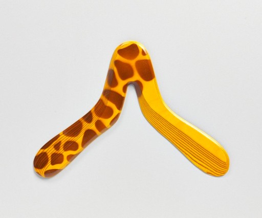 Ręcznie robiony, malowany w swój typowy wzór przypominający żyrafę. Polecany od wieku 12 lat. Zasięg około 25-30 metrów. Wymiary bumerangu: 27x19cm. Materiał: Koskisen, 10-cio warstwowa, brzozowa sklejka lotnicza z Finlandii