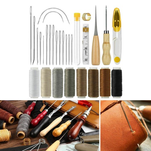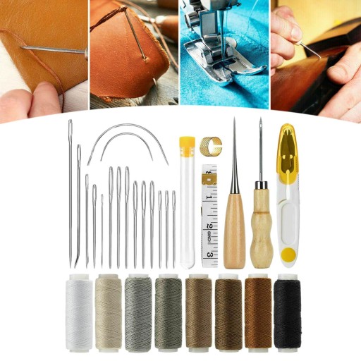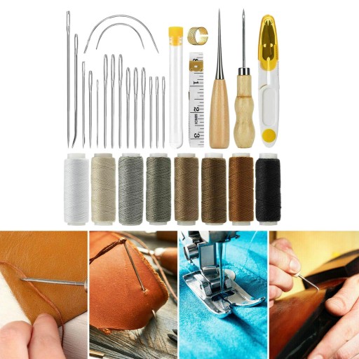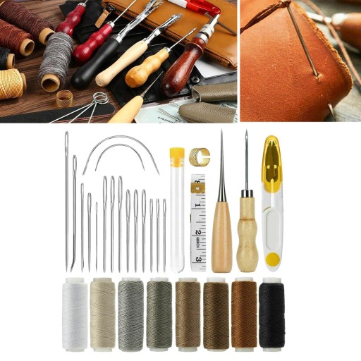 Pakiet zawiera: 9 x skórzane narzędzia do szycia, 8 x sznurek do nici tapicerskich, 7 x skórzane narzędzia do szycia, 1 x szydło do szycia, 1 x szydło hakowe, 1 x narzędzie pomiarowe, 1 x naparstek do szycia, 1 x nożyczki do przędzy.