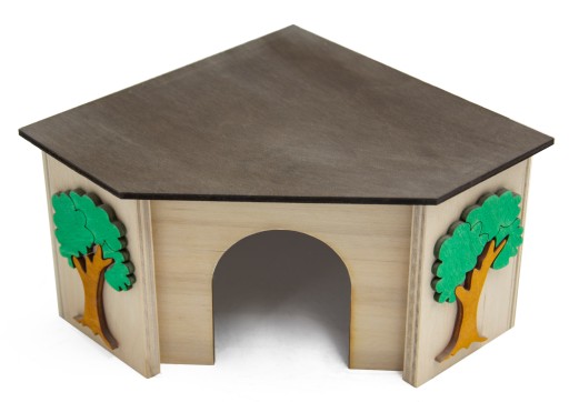 Domek dla chomika syryjskiego, roborowskiego, myszki i innych gryzoni wykonany z naturalnego drewna, który może być bezpiecznie podgryzany przez Twojego pupila. Stanie się idealnym schronieniem dla małego gryzonia! Domek nie posiada podłogi, zważając na względy higieniczne i praktyczne.
