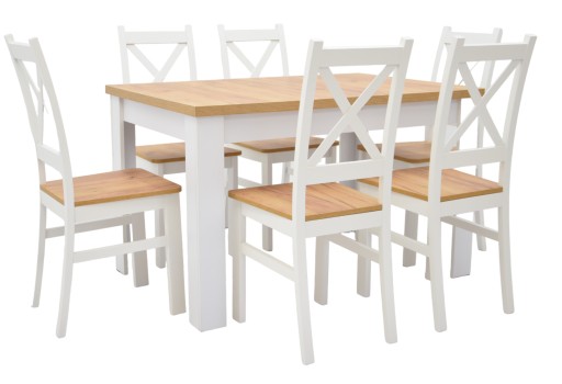 Prezentujemy zestaw prostokątny rozkładany biały, blat CRAFT + krzesła loftowe KRZYŻAK biały