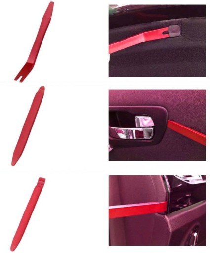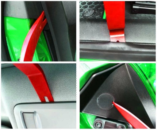 Zestaw do demontażu tapicerki jest niezwykle prosty w obsłudze, umożliwiając precyzyjny i dokładny demontaż tapicerki, ponadto odpowiednio użyty nie powoduje zarysowań na tapicerce, co wpływa na estetykę wnętrza.