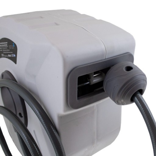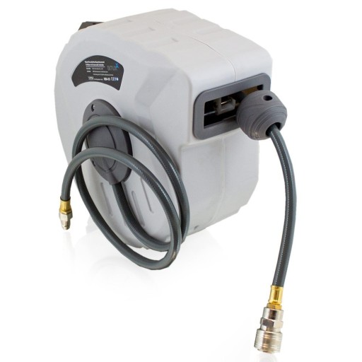 - Długi wąż pneumatyczny w automatycznym zwijaku,