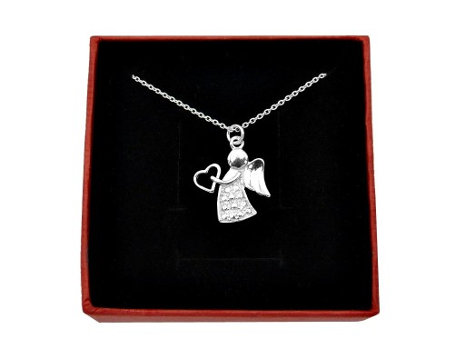 Srebrny naszyjnik aniołek z sercem + pudełko