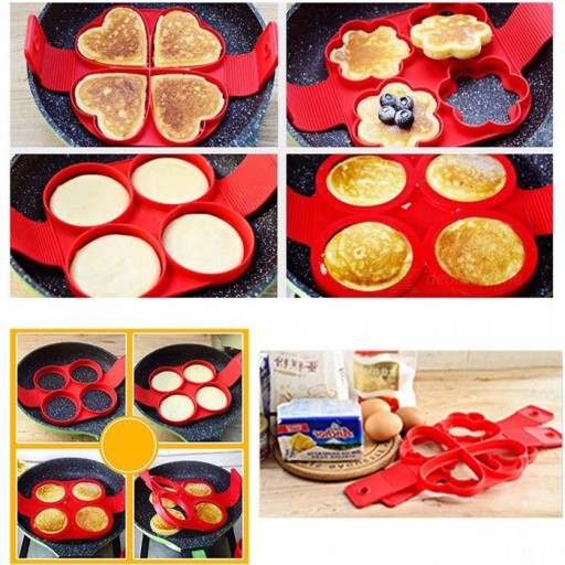 Silikonowa forma do wypieku ciasteczek, smażenia jajek, placków - przyda się każdej Pani domu. Wyposażona jest w aż 4 otwory! Świetnie sprawdzi się w wypieku ciasteczek o określonym kształcie. Doskonale nadaje się do pieczenia dzięki dużemu przewodzeniu ciepła które skraca jego czas i oszczędza energię.