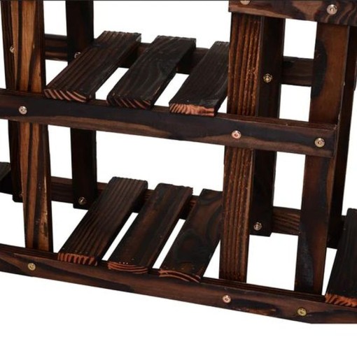 Kwietnik z drewna sosnowego w odcieniu ciemnego brązu .