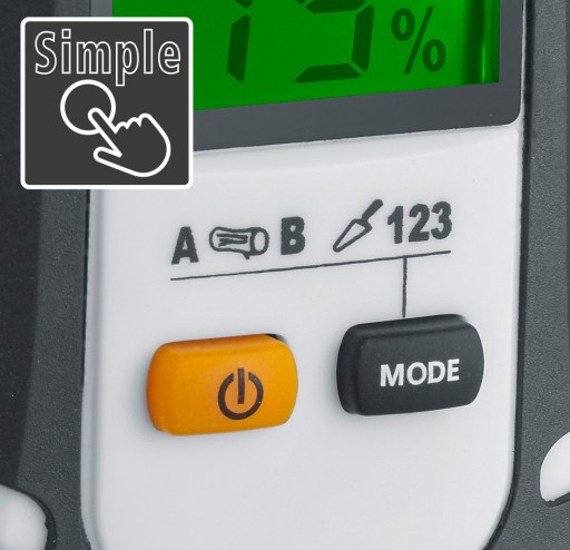 Uniwersalne urządzenie do pomiaru wilgotności materiału umożliwia określenie wilgotność materiału 102 gatunków drewna i 3 rodzajów materiałów budowlanychoraz uniwersalny indeks wilgotności za pomocą pomiaru rezystancji. Wyświetlacz LED pokazuje informację o stopniu zawilgocenia lub wysuszenie dopasowując się do wybranego materiału. Gdy tylko zmierzona wartość jest stabilna, jest ona rejestrowana na wyświetlaczu dzięki funkcji auto-hold .