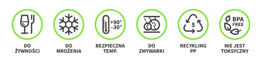 💦 Pojemnik może być przeznaczony do przechowywania żywność i jest nietoksyczny, odporny na wysokie i niskie temperatury (od -30 do +90) i może być myty w zmywarce