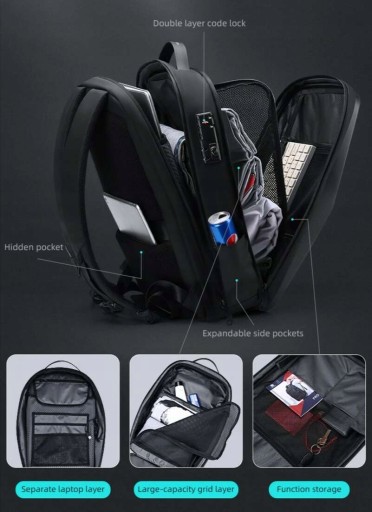Galeria produktu Antykradzieżowy plecak FRN7386 dwukomorowy na laptopa 17,3" z USB