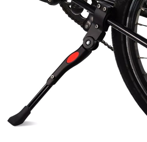 - ANTYPOŚLIZGOWE NAKŁADKI - podpórka posiada 2 gumowe podkładki, które podczas montażu do ramy powodują, że rower nie rysuje się; dodatkowo nóżka posiada antypoślizgową końcówkę, stopka jest na tyle szeroka, że podczas ustawienia na miękkiej powierzchni rower nie przewróci się.