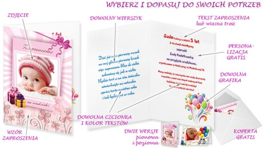 - oczywiście wszystkie daty, miejsca i dane dziecka dopasujemy do Twoich potrzeb.