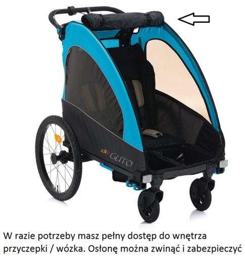 – Przyczepka posiada również osłonę/markizę do zacienienia przed słońcem
