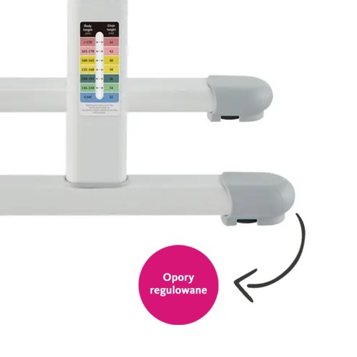 — mechanizm regulacji wysokości pozwala w łatwy i szybki sposób wyregulować stół i krzesełko, co optymalnie dopasowuje je do odpowiedniego wzrostu dziecka
