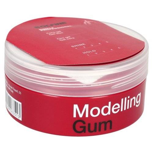 Solfine Modelling Gum modelująca guma zapewniająca mocne utrwalenie jak żel, ale jest plastyczny jak wosk. Rzeźbi, dodaje blasku i wspiera odważniejsze stylizacje. Stylizuje, formuje i zapewnia trwałość. Doskonały dla krótkich włosów do stworzenia plastycznego błyszczącego efektu lub w celu postawienia włosów. Nie natłuszcza i nie zostawia śladów.