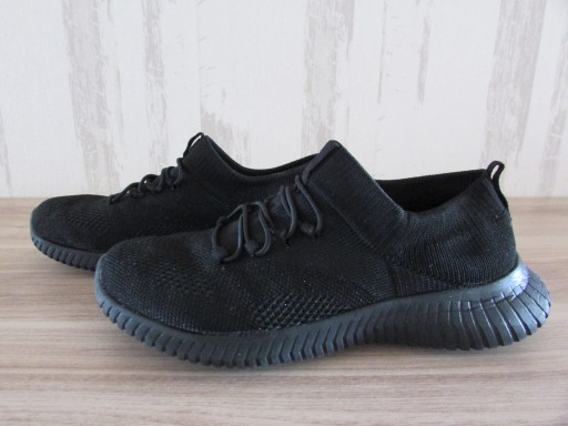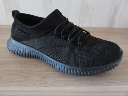 Szczegół produktu: Kolor: Czarny. Materiał wierzchni: Materiał tekstylny Wkładka buta: Materiał tekstylny z miękką wkładką z pianki zapamiętująca kształt stopy. Podeszwa: Wysokogatunkowe tworzywo sztuczne. Dł. wkładki: 23,5 cm Wysokość całkowita buta: 8.0 cm Grubość podeszwy: 1,0 cm (palce) - 3.0 cm (pięta) Metoda konserwacji: Spray. Opakowanie: Oryginalne.