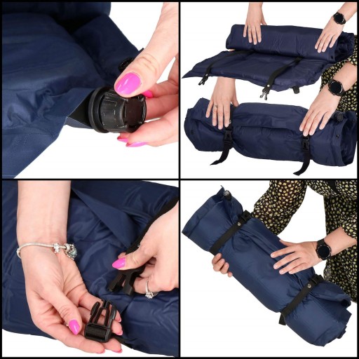 Jeżeli składanie materacy, karimat lub innych podobnych rzeczy kojarzy Ci się tylko negatywnie, w pomocy przychodzi nasz produkt. Po skończonym biwakowaniu wystarczy precyzyjnie zwinąć matę, a następnie spiąć ją za pomocą dołączonych klamr zatrzaskowych. Mata utrzyma się w jednej pozycji, a regulowane paski pomogą Ci ją dodatkowo skompresować.