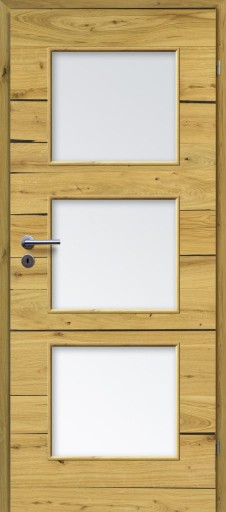 Drzwi o konstrukcji płytowej, oklejone naturalnym fornirem. Krawędzie drzwi zdobi naturalne drewno. Wypełnienie drzwi stanowi płyta wiórowa wielootworowa, wysoko prasowana. Drzwi są uszlachetnione podwójną warstwą oleju o podwyższonym parametrze odporności na ścieranie, przyjaznym dla zdrowia i środowiska.