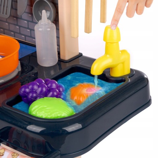 Kuchenka posiada również zlewozmywak z kranem z którego leci prawdziwa woda!