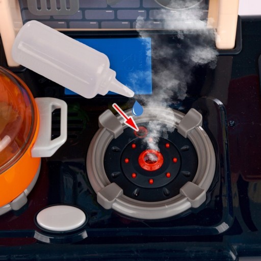 Palniki w trakcie zabawy wytwarzają „zimną parę” która imituje efekt gotowania.